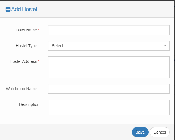 You can easily create and manage your hostels record by clicking the "Hostel" link under the menu.