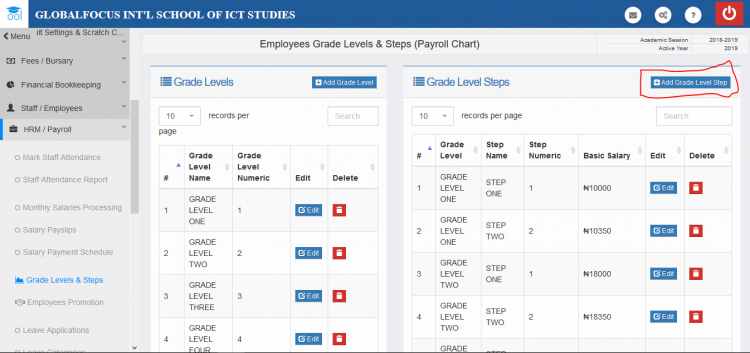 Grade levels can be used to set the levels of the staff in the school. The levels can be broken down into steps which can be used in promotions and salary structure.