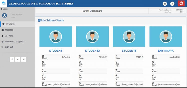 - The parent account is used by a parent to track the information and progress of his/her wards in the school. The parent can view results, see pending assignments, review pending payments and preview upcoming events like PTA meetings