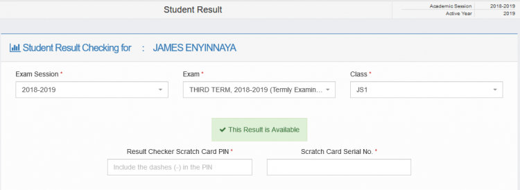 4. Click on the link that says your ward/child’s name result. Eg: if your child’s name is Enyinnaya, click on the link that says Enyinnaya’s Results. This will reveal the result checking page as shown in fig2.3