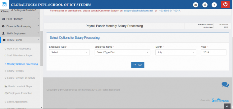 1. Enter the details of the employee you want to process their salary and the effective month. Click Load to open the processing page.