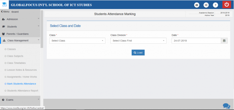 1. From the dashboard, select the class and date of the attendance and click Load to view the class list
