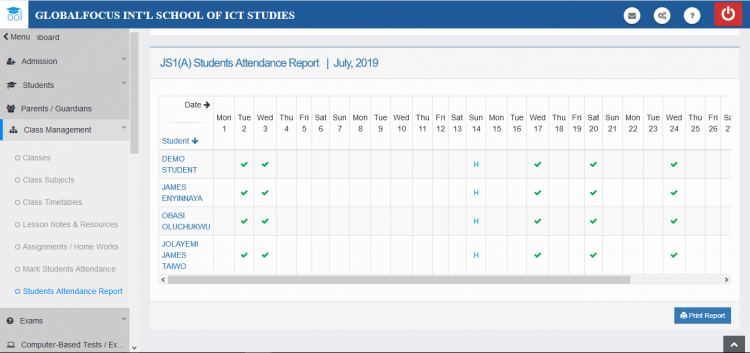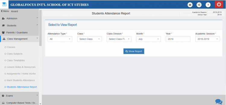 You can record and manage students attendance easily with the attendance tool. To access the attendance system, Click on the Class Management menu and click on Mark Students Attendance.