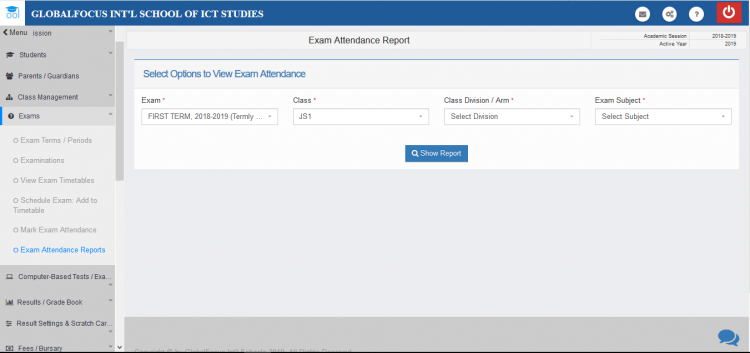 2. Enter the details of the class you wish to view thier attendance report and select the wiritten exam.