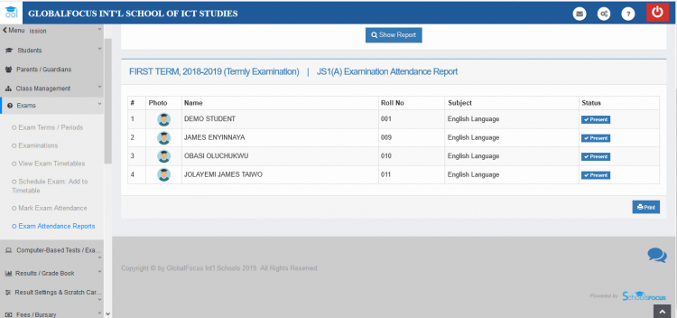 You can easily take the attendace of students in the class by using the exams attendance system.