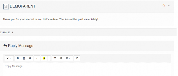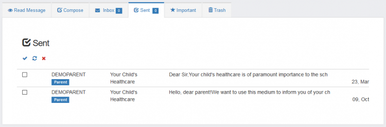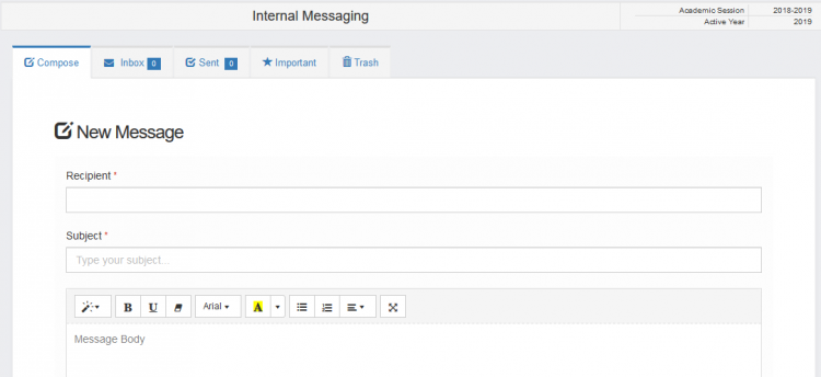 The messaging tool is an internal communication feature that can be used to contact the members of staff or parents. It is useful when sending memos and other information to your staff.